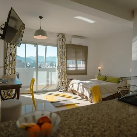 Todos os quartos fornecem varanda, secretária e uma televisão de ecrã plano com canais por satélite juntamente com microondas e um refrigerador uma cozinha equipada. Os hóspedes deste apartamento têm acesso para terraço. O apartamento Departamento Con Vista A Las Montanas + Garage tem 1 camas. 1 casas de banho estão disponíveis.